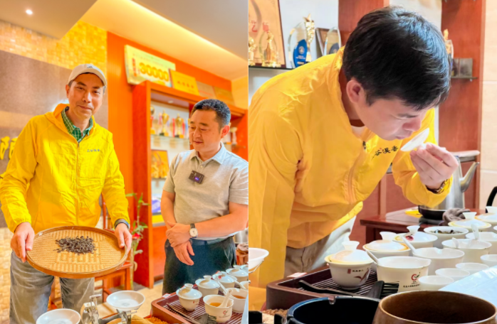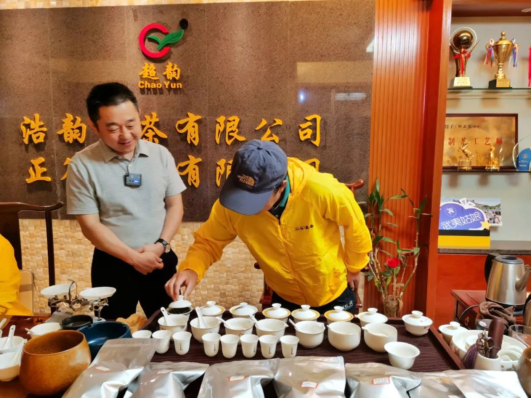 演示结束,制茶师取出对等工艺制作出来的当年春茶,供达人们品鉴。***评茶师、考评员“茶人老武”也在其中带领大家从单品种茶开始品茶的香,而后又采用多品种茶混搭的方式,让达人们感受到千变万化的茶香。