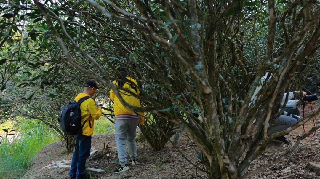 树龄长,枝干高,常年在雾气中生长,枝干上长了青苔,容易湿滑,人工需小心翼翼爬上树枝去采摘。