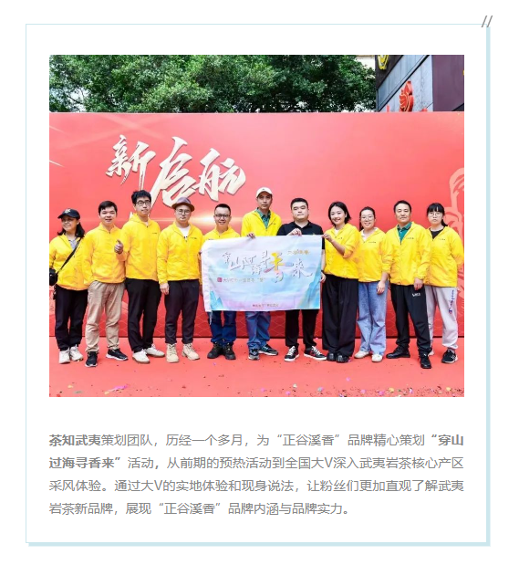 茶知武夷在“正谷溪香”品牌招商启航之日,策划了三天两夜的“寻香之旅”,让达人们代表万千粉丝去探一探何谓“茶香的奏响乐”。